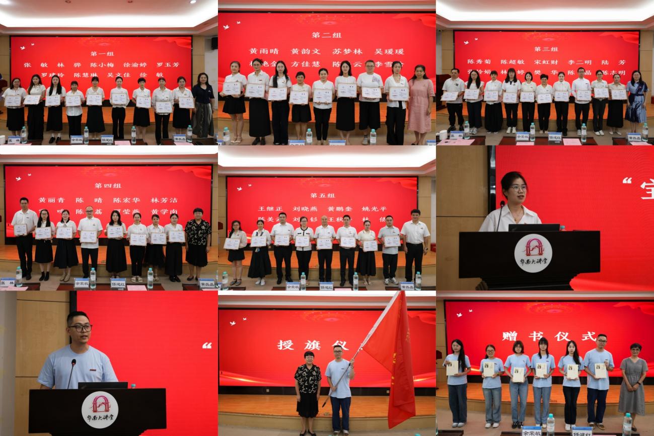 在授旗与赠书环节,校长任建红向学员代表刘宇授旗,象征“宝笙班”育人使命的传递;理事长余荣敏向6位学员代表赠书,为青年教师成长送上精神养分。