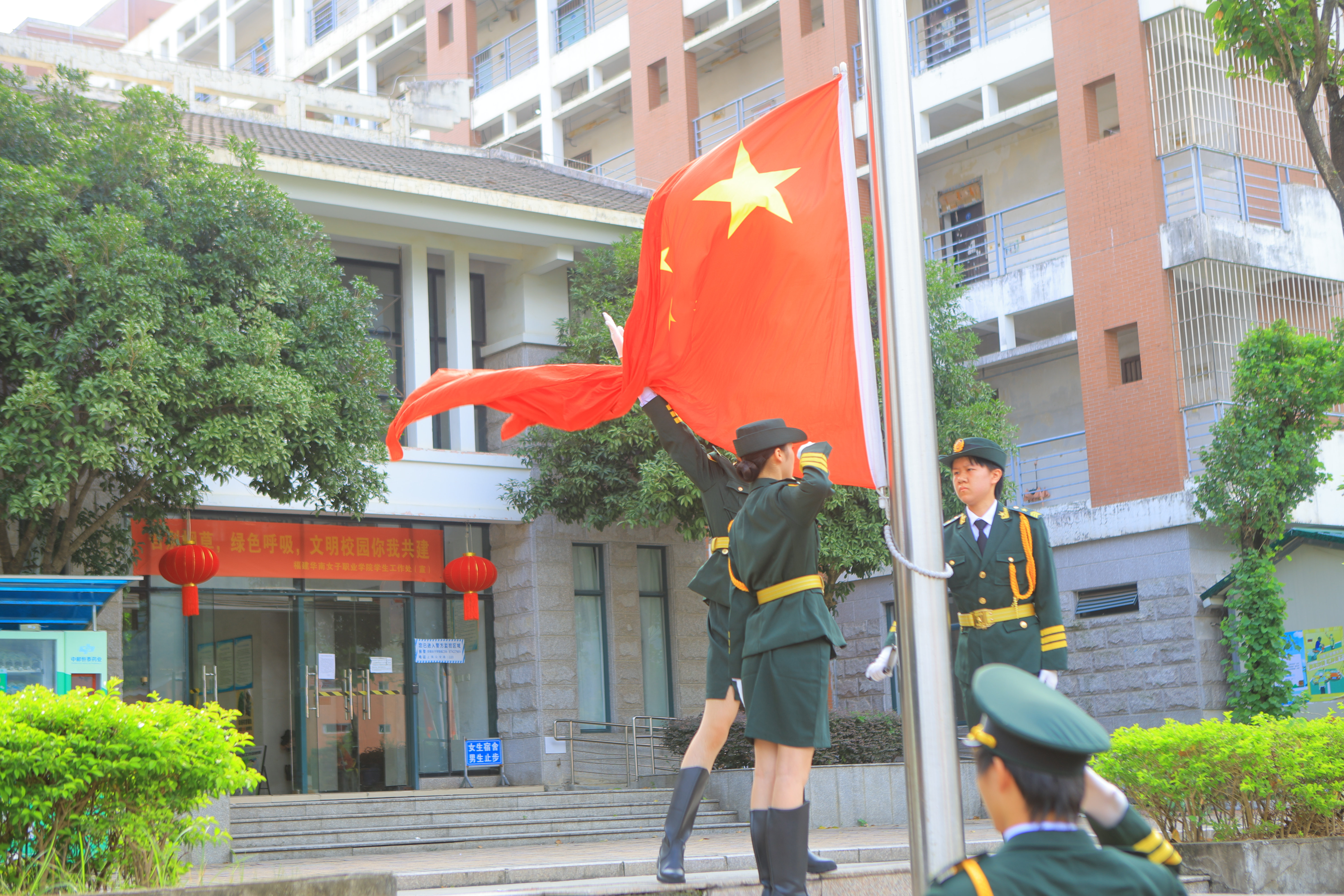 10月1日早上9时许,庆祝中华人民共和国成立76周年升国旗仪式在学校风雨操场举行。党委书记张林、党委副书记张秋蘋、校团委负责人、各系党总支书记、团总支书记、辅导员及200余名师生代表整齐肃立,满怀崇敬之情,以庄严的升旗仪式,向祖国致以最崇高的敬意与祝福。