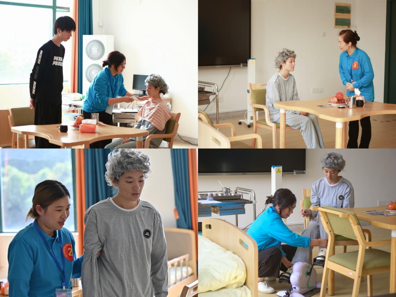 为确保赛事高效推进,我校提前成立专项工作组,从场地、物资、人员三方面周密部署。在场地规划上,精准划分竞赛区、候考区,设置家庭照护技能考场及理论机考机房,张贴清晰指引标识;物资筹备中,严格按照赛事标准准备婴儿模型、智能护理床、下肢功能训练器等专业模拟设备,逐一调试确保合规;人员保障上,组建由专业、实训中心、继续教育学院、后勤管理处、团委构成的服务团队,全程负责竞赛技术支持、竞赛场地保障以及志愿者培训等工作。