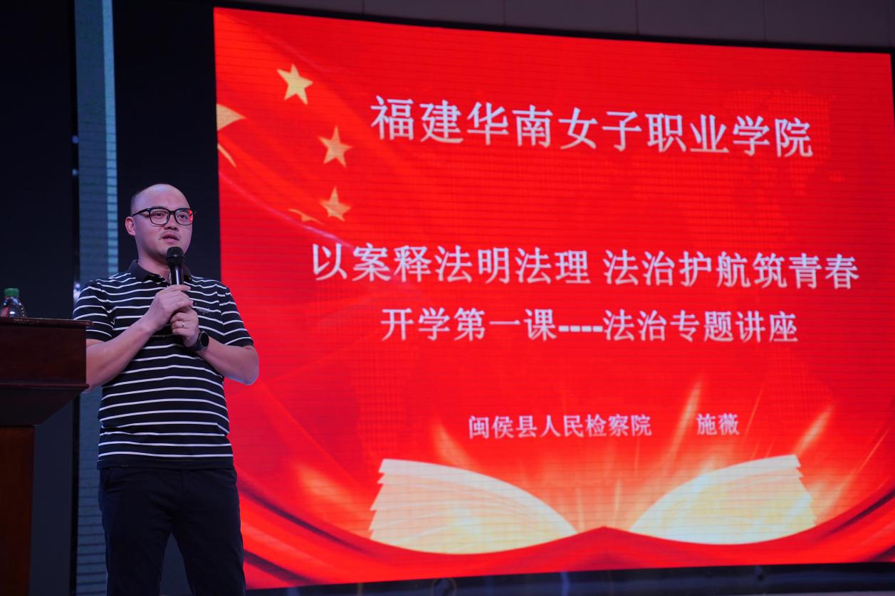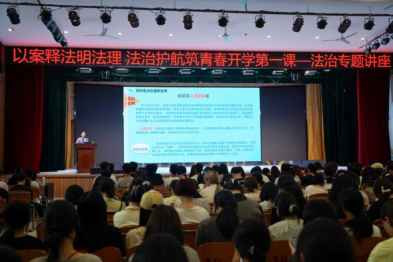 为切实增强在校大学生法治意识与自我保护能力,9月9日上午,我校特邀闽侯县人民检察院大学城检察室施薇检察官在礼堂为2025级新生作《开学第一课之筑牢校园安全墙》法治专题讲座。保卫部(处)长雷鸣主持,800余名新生现场聆听。