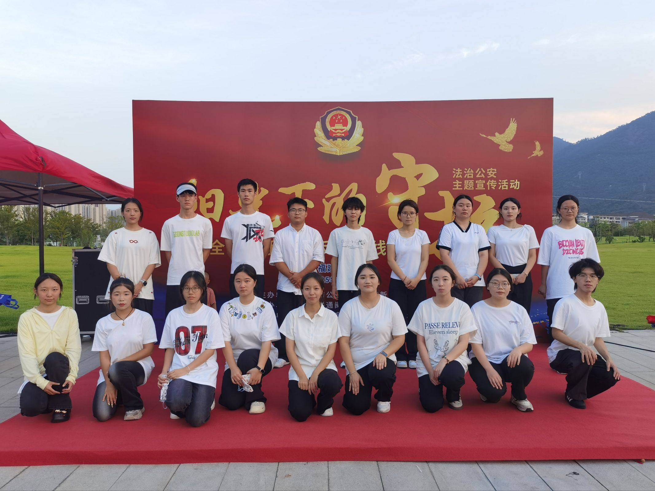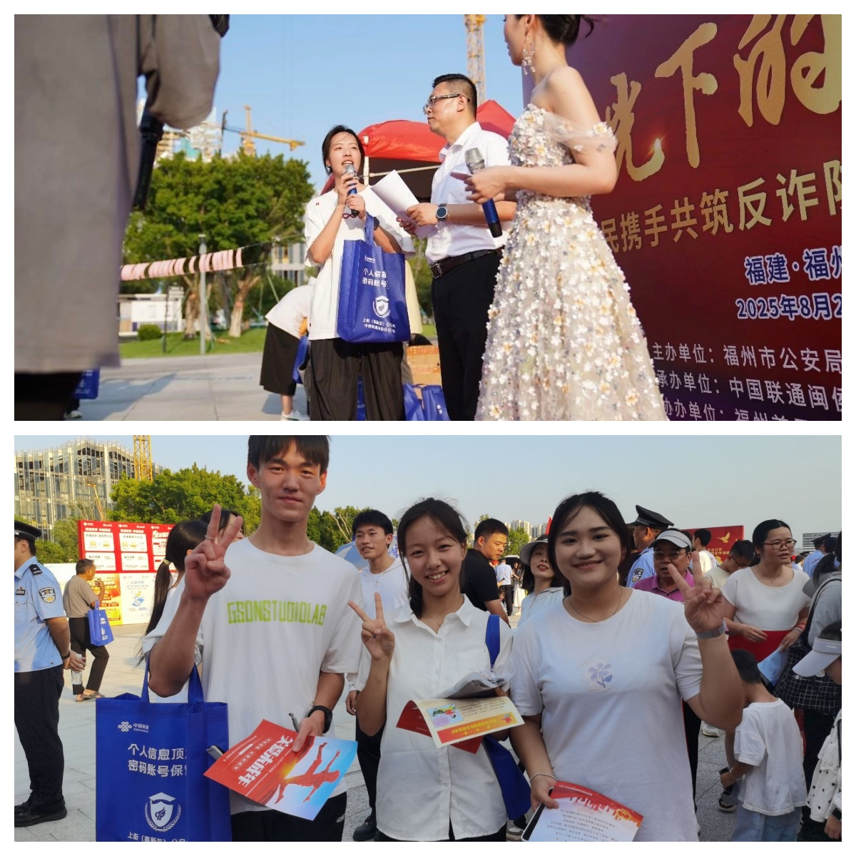 2025年8月23日17时,我校组织20名师生代表赴闽侯县上街镇旗山湖公园,参加由福州市公安局上街(高新区)分局主办的“阳光下的守护”法治公安主题宣传活动。此次活动按照公安部、福建省公安厅、福州市公安局统一部署开展,纪念习近平法治思想提出五周年,落实习近平总书记关于打击治理电信网络诈骗犯罪的重要指示批示精神。