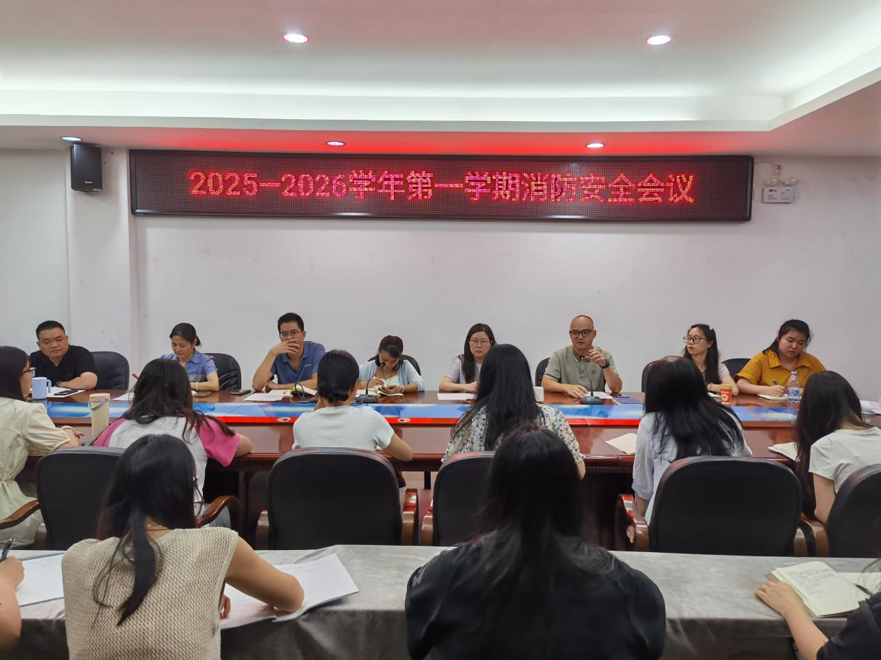 2025年9月24日上午,学校在行政楼第一会议室召开9月消防安全例会暨国庆中秋“双节”安全部署会。校党委副书记张秋蘋出席会议,保卫处全体人员、学工处处长、各系部总支书记及全体辅导员共五十余人参会。会议由保卫处处长雷鸣主持。