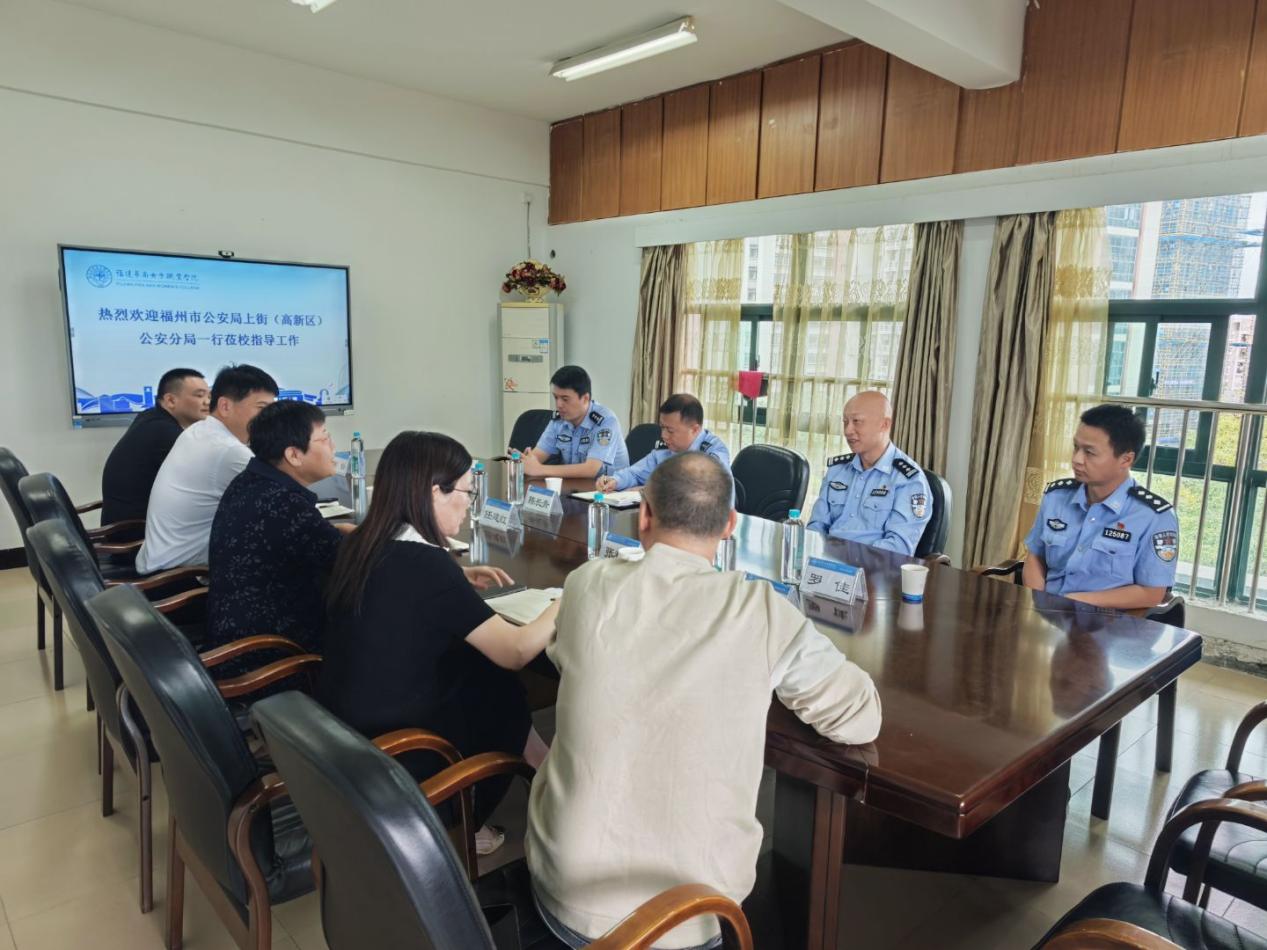 10月21日上午,福州市公安局上街(高新区)分局领导一行莅临我校,开展校园安全工作调研。校长任建红、党委书记张林、党委副书记张秋蘋及相关部门负责人参加座谈。