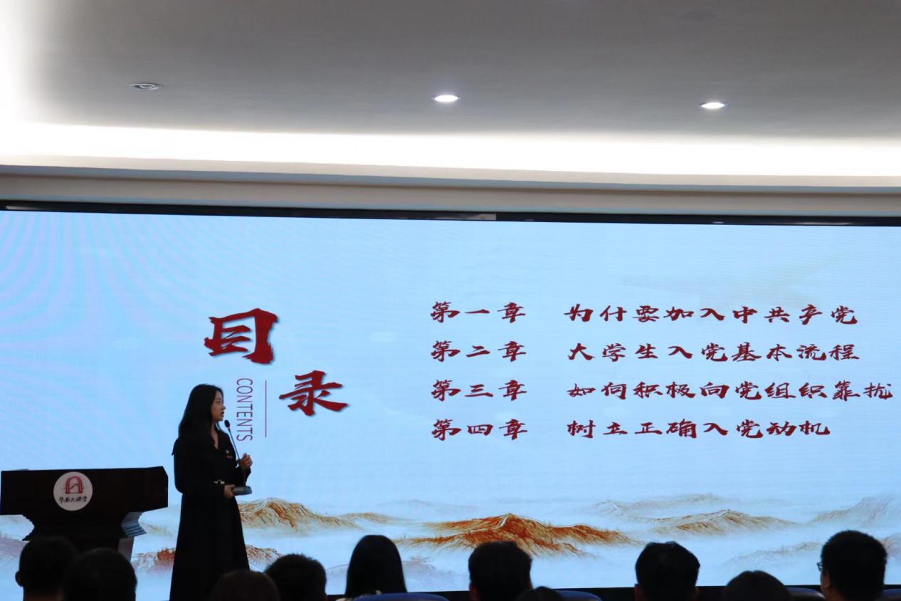 首先,陈慧琳同志简要介绍了我系党建工作的基本情况、总体思路以及所获荣誉;随后,围绕为什么加入中国共产党、大学生入党基本流程、如何积极向党组织靠拢四个方面进行详细解说,包括党的性质、指导思想、宗旨、党的最高理想和最终目标,以及入党申请书、思想汇报、自传等入党材料的撰写要求和注意事项等内容进行讲解,通过讲述党的基本理论使得2023级工程造价新生对党的认识有了进一步提高,引导同学们要始终秉持正确的努力方向,以党员的标准严格要求自己。