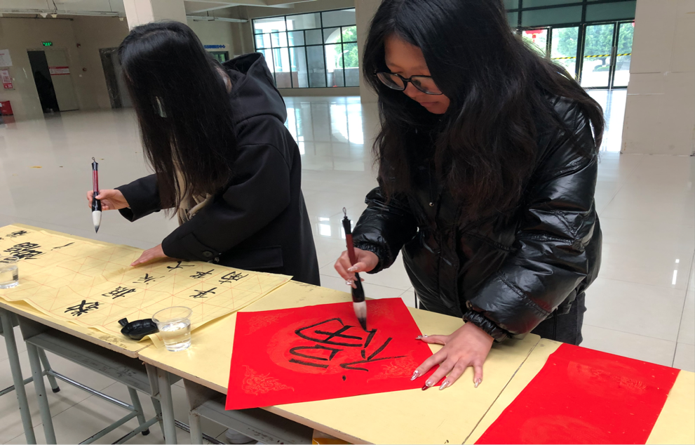 阵阵墨香指尖流,悠悠韵味心脾沁。活动现场,春联纸、毛笔和砚台被整齐地摆放在桌子上,鲜红的纸张渲染着浓浓的节日氛围,一笔一墨,一竖一横,一撇一捺,一幅幅写满新年祝福的春联和“福”字。写的是汉字,报的是节讯,暖的是人心,大数据应用系的同学们于黑墨红纸间感受着笔墨丹青的独特魅力,浸润中华优秀传统文化的韵味中,续写着饱含真情的美好祝愿。