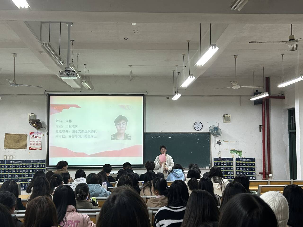 会议开始,在场师生听取并审议共青团福建华南女子职业学院大数据应用系团总支委员会增补组织委员选举后,各教师、学生候选人回顾了自己一学期以来参与的工作和活动,分享自己的成长与收获,在面对提问时也从容不迫,对大数据应用系团总支的未来规划畅所欲言,表达了各自的想法
