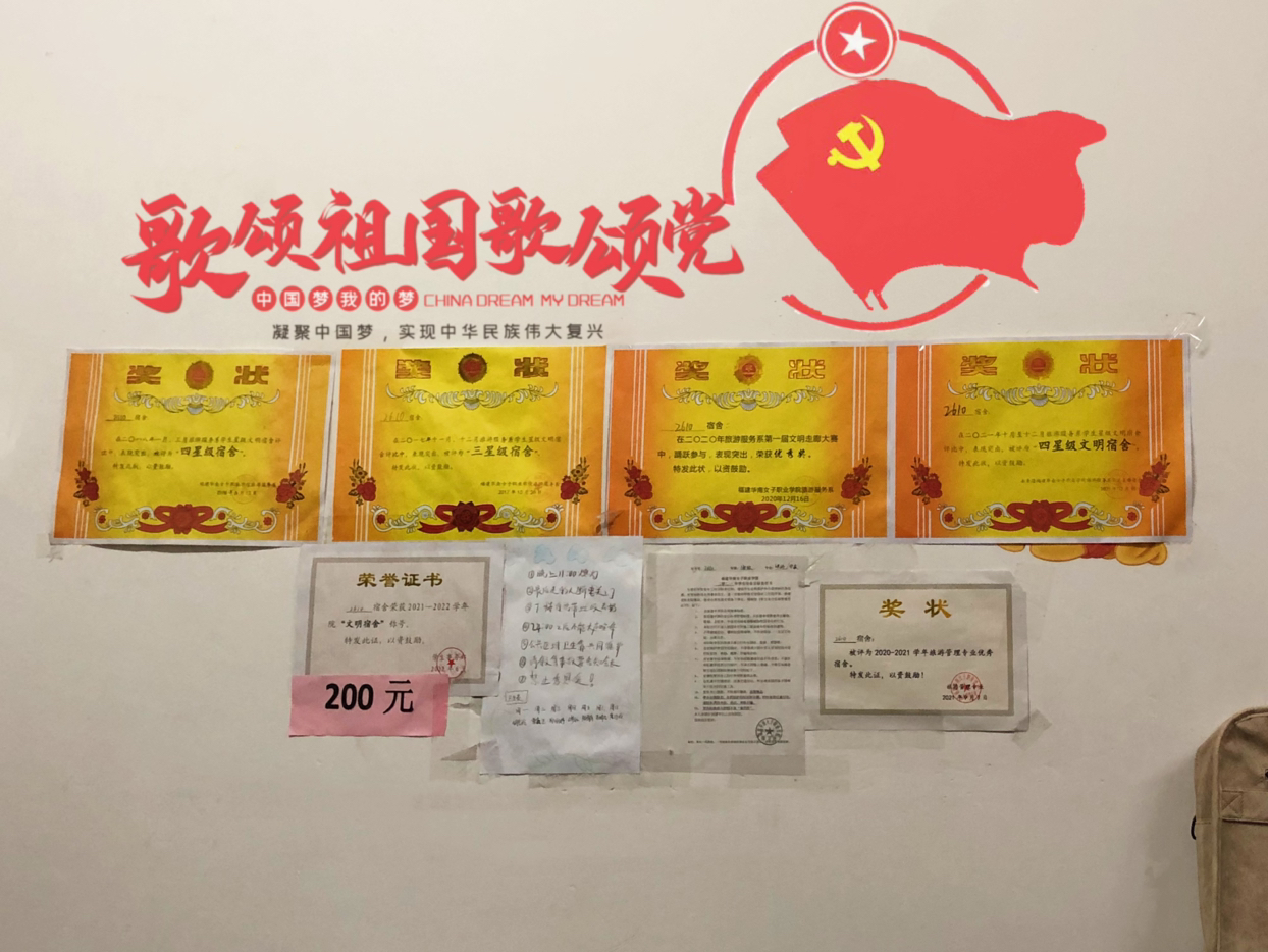 寝室作为我们大学生活学习的主要空间,体现着一个家的概念,它承载着并体现着其内部成员的人文精神、生活态度及综合素质。为深入学习贯彻党的二十大精神,落实“三全育人”理念,创新育人模式,打造党建品牌,以高质量党建引领系部高质量发展。为了营造良好的寝室文化气氛,发挥寝室特长,丰富大学生活,弘扬个性创新,展示我校大学生风采,并促进寝室之间,同学之间的凝聚力,故大数据应用系举行宿舍党建装饰评比活动。