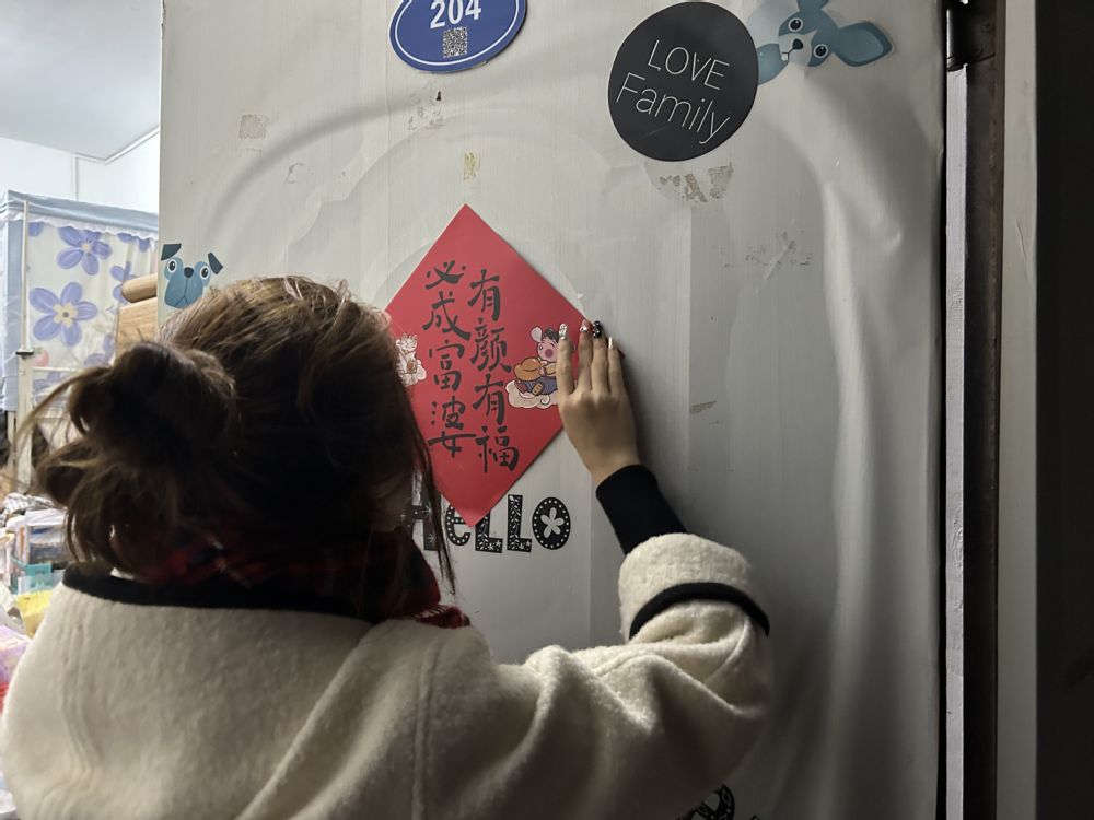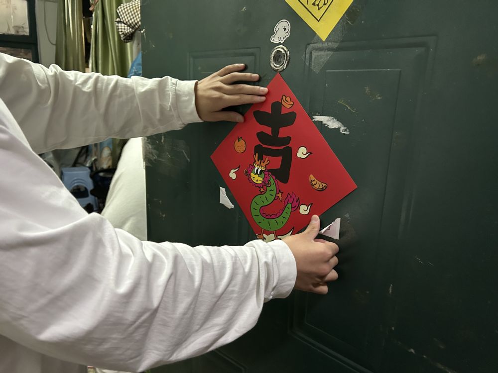 “年年顺景财源广,岁岁平安福寿多”、“春回大地风光好,福满人间喜事多”,一幅幅春联弘扬着中华优秀传统文化,传递着同学们内心美好的祝愿。纸上墨花开是锦上添花,是无数锣鼓敲出的喜庆,一幅幅春联粘贴在宿舍的门框上,使人感受到喜气洋洋的氛围。