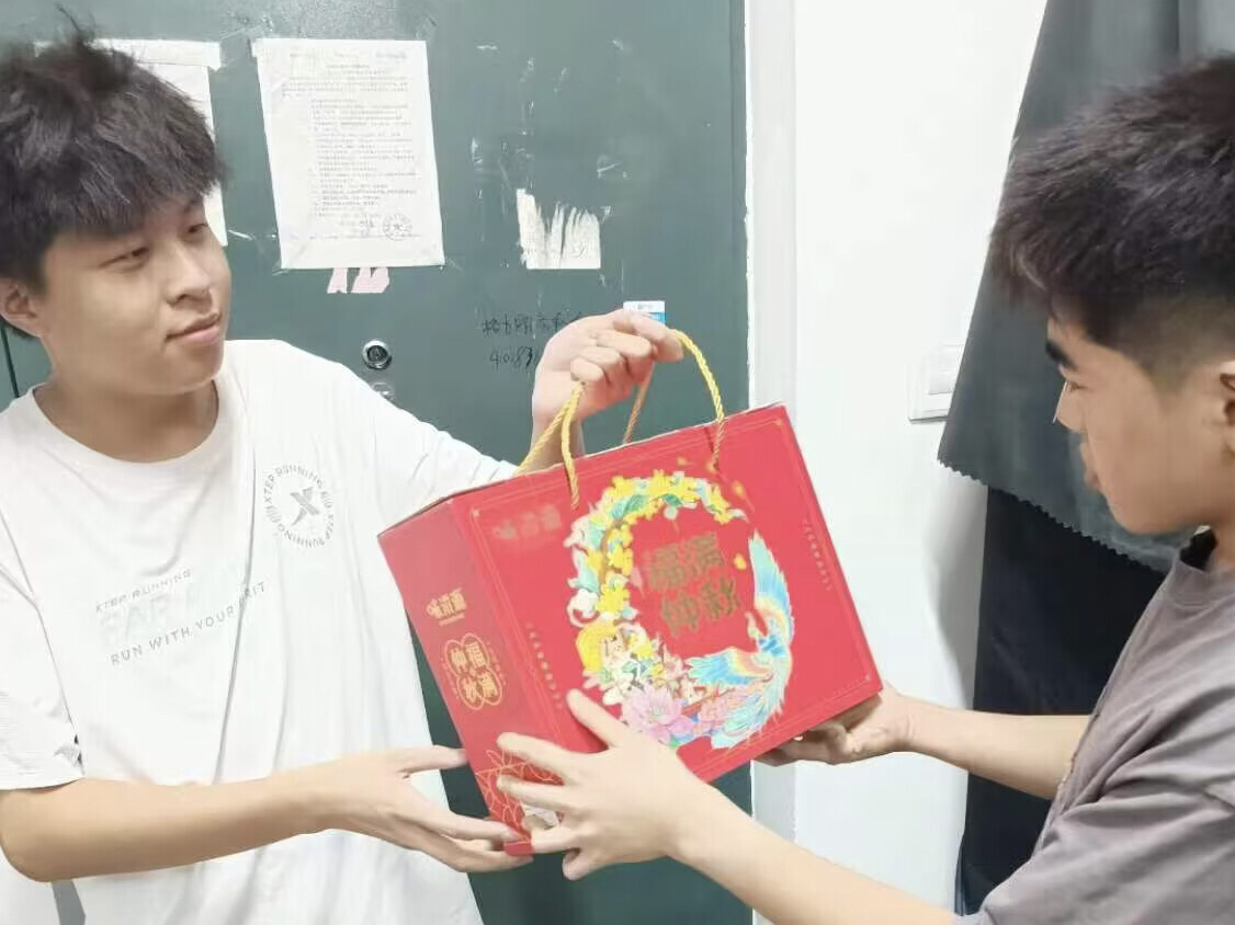 辅导员们把这份饱含温情的节日礼品一一发放到同学们手中,领取月饼的同学脸上满满的感动与喜悦,每一声“谢谢”都浸透着幸福的甜味,每间宿舍里都洋溢着浓浓的中秋节日氛围。
