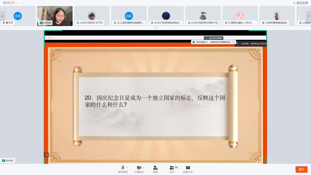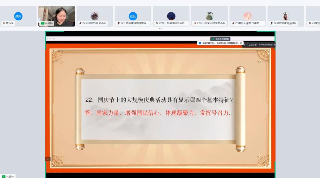 先有国,而后有家,中华民族上下五千年的历史,成就了我们幸福的家园,这里有五十六个民族的儿女,也有多姿多彩的山河,有探寻不完的文化,也有灿若星河的瑰宝。风雨征程,砥砺奋进,迎来如今举国的欢庆。在国庆节来临之际,大数据应用系举办“学思想迎国庆 感党恩”迎国庆主题知识竞赛,邀请广大华南学子一同感受祖国七十四年的丰功伟绩。