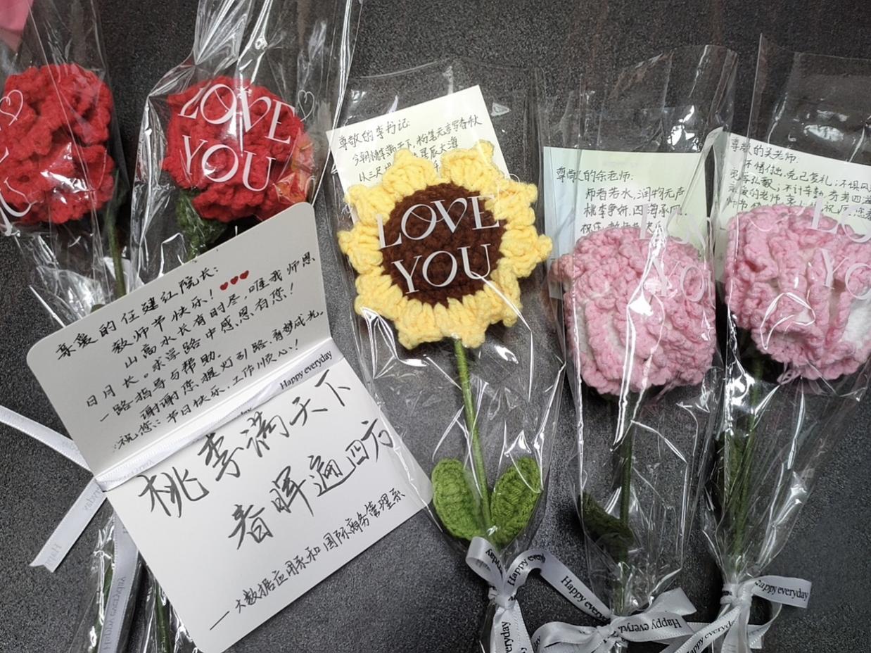为了感谢教师们,无私的付出,华南女子学院大数据应用系与国际商务管理系的同学们共同向老师们献上了自己精心制作的手工彩色花束与贺卡。封封书信写满师生情谊,朵朵鲜花娇艳欲滴,张张贺卡流露赞美,这些卡片上写满了对老师们的美好祝福和感激之情。同学们用自己的心意表达对老师们的敬意和爱戴,以表达同学们发自心底的爱。