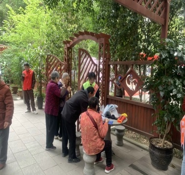 活动现场,志愿者与老人一起沟通交流,走进他们的内心,了解他们的故事,倾听他们的心声。志愿者认真倾听老人回忆往事,思考自我将如何成长。志愿者们还给老人们送上了拗九粥,大家一边观看节目一边品粥,一派其乐融融并在饭后陪着老人们做游戏,帮助社区打扫卫生,用朴实而真诚的行动表达着对老人们的关爱