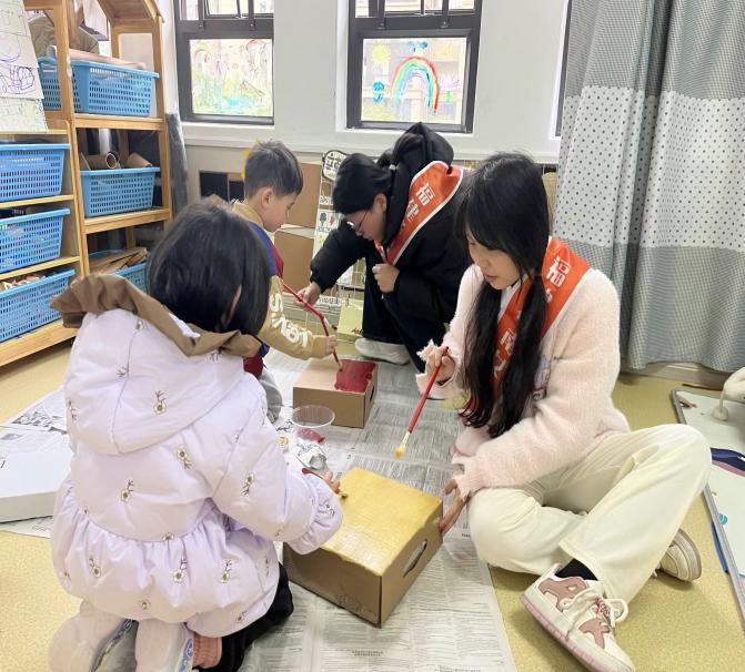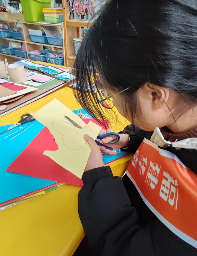 志愿者们耐心倾听孩子们的话语,与他们交流互动,陪伴小朋友们上课并辅助他们吃点心。最后志愿者们带领孩子们一同进行了角色扮演、手工折纸、拼积木等一系列丰富多彩的游戏活动。
