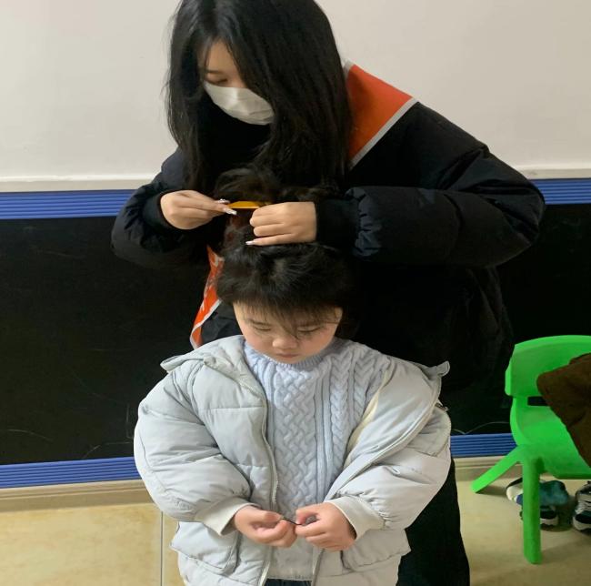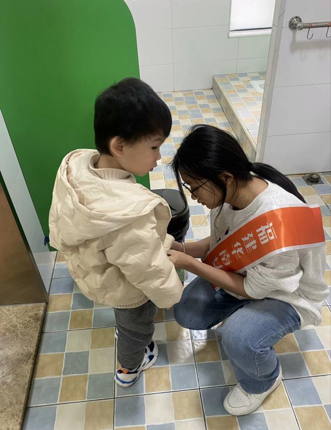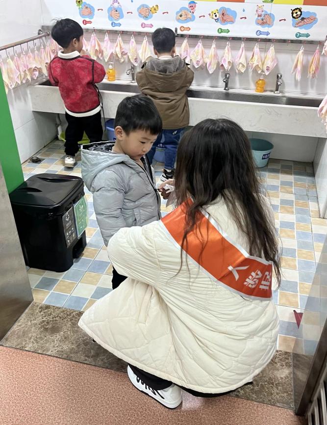 活动开始,志愿者们首先跟孩子们进行了自我介绍,之后积极参与到幼儿园工作的各个环节,协助班级老师及保育员阿姨维持班级秩序,做好活动前后的卫生清洁及整理工作。