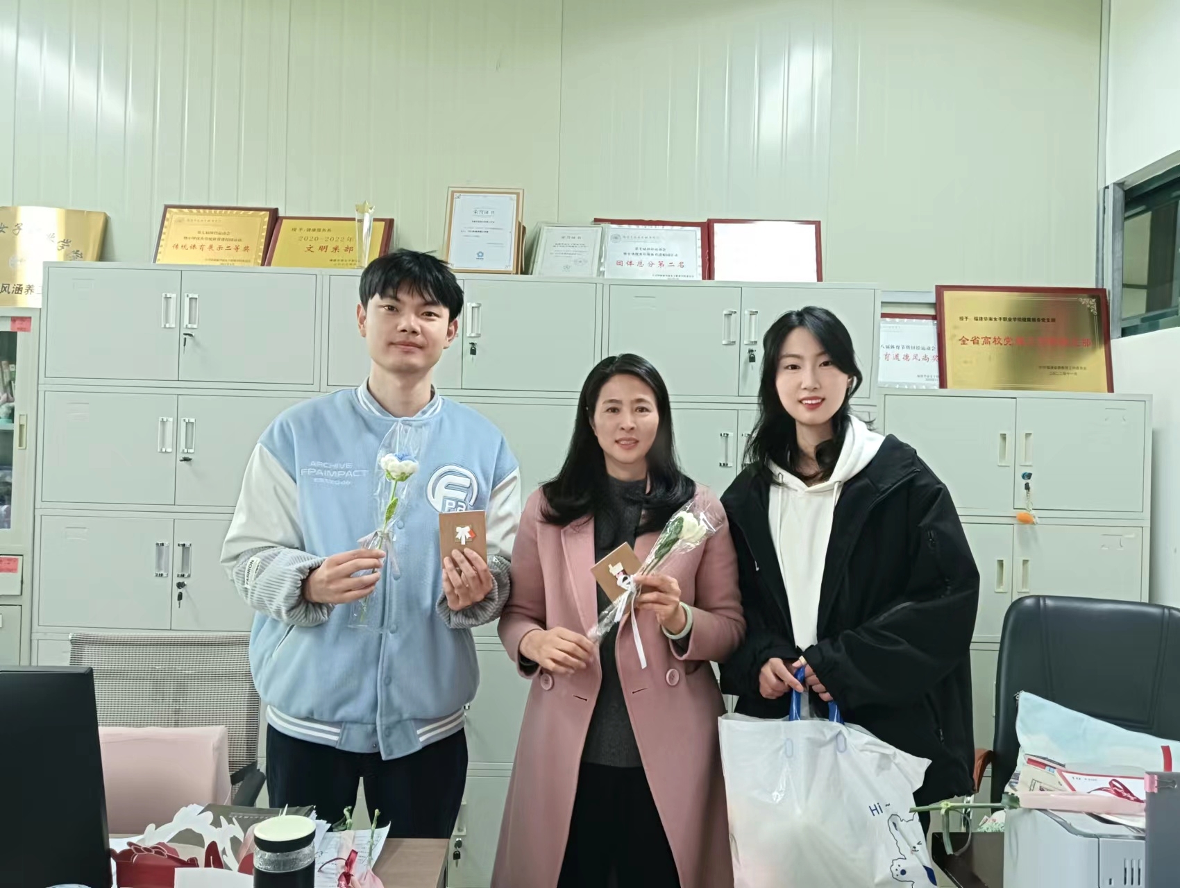 仲春之月,暖意融融,在此“三八”妇女节来临之际,大数据应用系的同学们为学院的女老师献上一束精心准备的花束,让老师们在繁忙的工作之余放松心情,释放压力,欢度属于自己的节日。