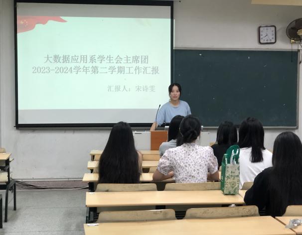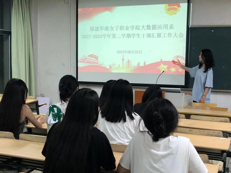 为进一步加强大数据应用系学生干部队伍建设,总结2023-2024学年第二学期工作以及各部接班人交接工作完成情况汇报,6月23日晚,大数据应用系团总支举行学生干部述职大会,团总支书记兰燕菲以及全体学生干部参加。