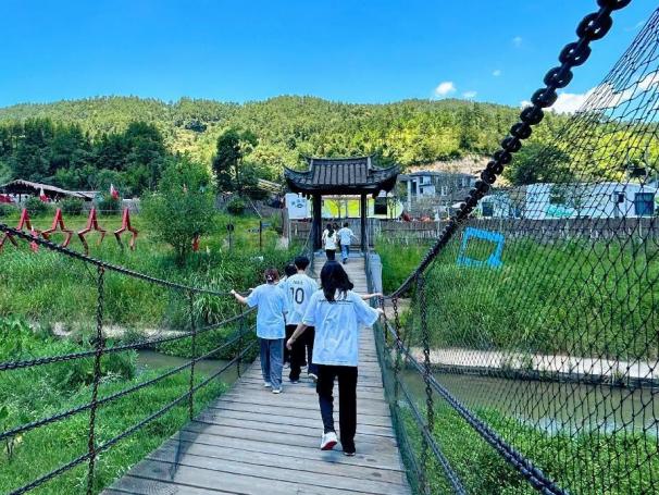 踏上层层阶梯,师生们首先参观的是位于村落中央的陈氏大院,作为中国工农红军北上抗日先遣队指挥部旧址所在地,它承载着红军北上抗日的重要记忆。师生们通过观看馆内的图文解说、沙盘模拟,身临其境地感受到了那段艰苦卓绝的峥嵘岁月,领悟了艰苦奋斗的长征精神。陈氏大院旁就是环山行军步道,瞭望台、战壕、铁索桥移步换景,复原后的革命遗址仿佛让人回到了激情澎湃的红色革命年代。经过同心桥,重走红军路,师生们深刻感受到“红军不怕远征难,万水千山只等闲“的革命精神,深化了对红色精神谱系的生动理解。