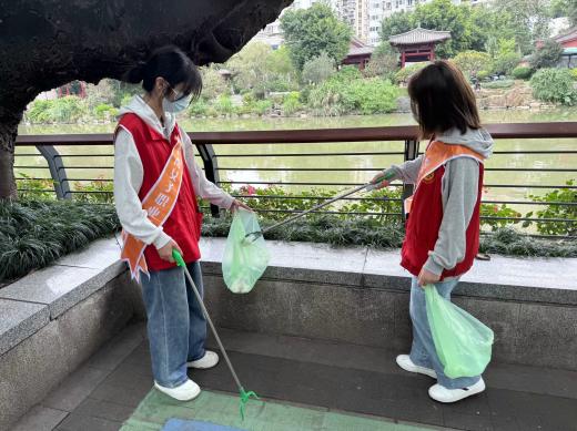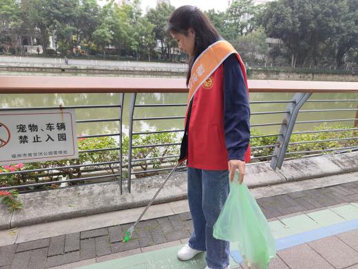 在经过详细计划及准备所需工具后,志愿者们开展了清扫活动。活动现场,同学们全情投入、认真仔细、配合默契。他们一次次弯腰拾起垃圾的身影,宛如跳动的音符,用那一抹鲜艳的志愿红撑起了充满生机的环保绿。在同学们的努力下,垃圾与漂浮物被有效清理,河道和公园环境焕然一新。