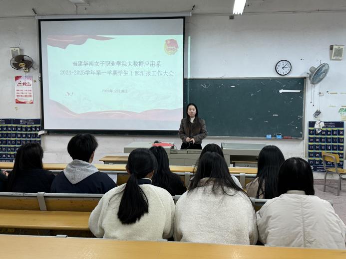 为深入贯彻落实习近平总书记关于青年工作的重要思想,贯彻落实《关于巩固高校学生会(研究生会)改革成果的若干措施》文件要求。2024年12月18日,大数据应用系团总支召开2024-2025学年第一学期学生干部工作述职大会,团总支书记兰燕菲老师及两委学生干部参加。