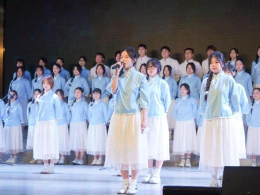 一曲《紫荆花盛开》更是将现场氛围推向高潮,婉转悠扬的旋律中,同学们用歌声诉说香港回归后的繁荣盛景,饱含对祖国统一的深情礼赞。