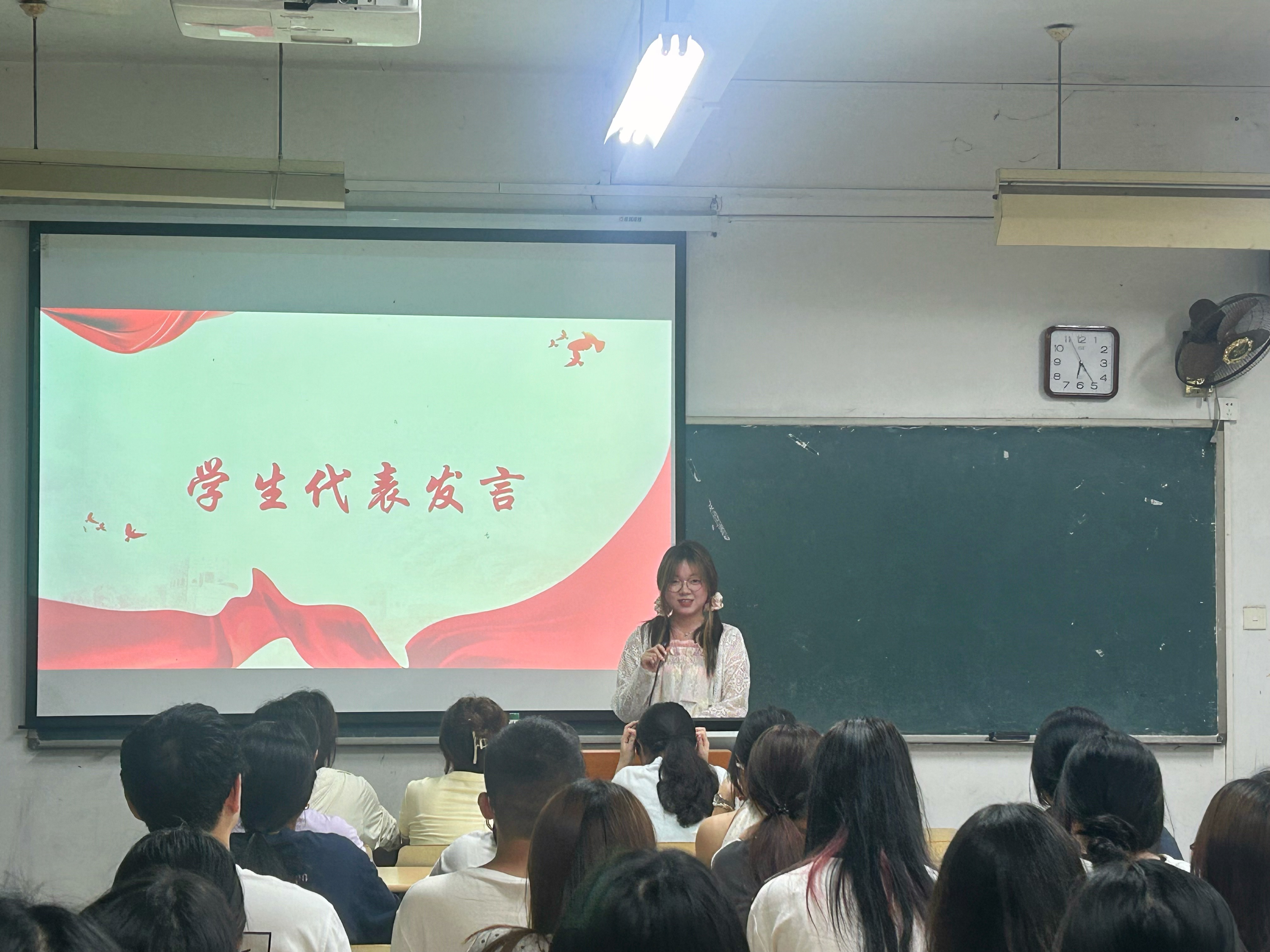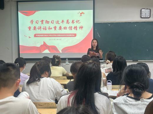 会上,全体学生深入学习了习近平总书记重要讲话《激励新时代青年在中国式现代化建设中挺膺担当》以及习近平总书记给谢依特小学戍边支教西部计划志愿者服务队队员的重要回信精神。随后,来自不同年级、不同专业的学生代表积极踊跃发言,交流各自的学习体会。