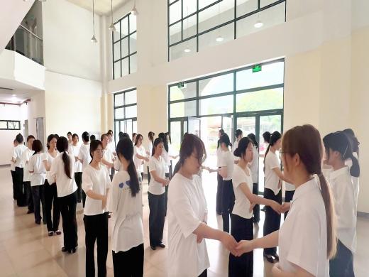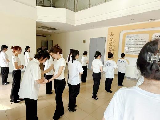 随后,通过充分的实操演练,同学们两两一组,互相纠正动作,在反复练习中掌握礼仪精髓,切身感受礼仪之美。