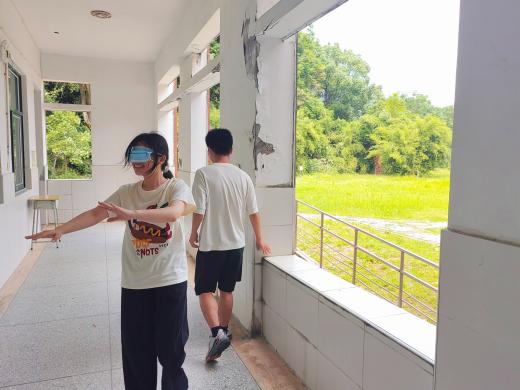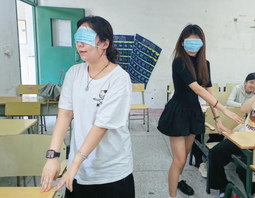 “蒙眼体验”环节为同学们带来了一场别开生面的感官冲击。当眼罩缓缓蒙上双眼,原本熟悉的环境瞬间变得陌生而充满挑战。大家小心翼翼地挪动脚步,尝试完成简单的日常动作,却发现困难重重。在跌跌撞撞中,同学们深刻体会到视力缺失带来的诸多不便,真切感受到明亮双眼的珍贵,进一步强化了保护视力的意识。