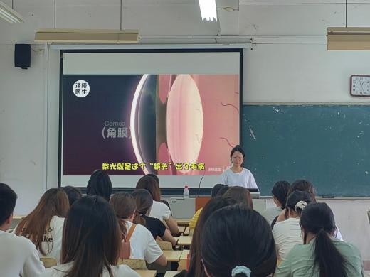 活动在充满趣味与知识的氛围中拉开帷幕。同学们围坐在一起,认真观看了护眼知识科普动画短片,短片以生动活泼的画面、通俗易懂的语言,将预防近视的要点、科学用眼的方法娓娓道来,让晦涩的专业知识变得生动有趣,大家全神贯注,沉浸在护眼知识的海洋中,认真汲取着每一个实用的护眼小贴士。
