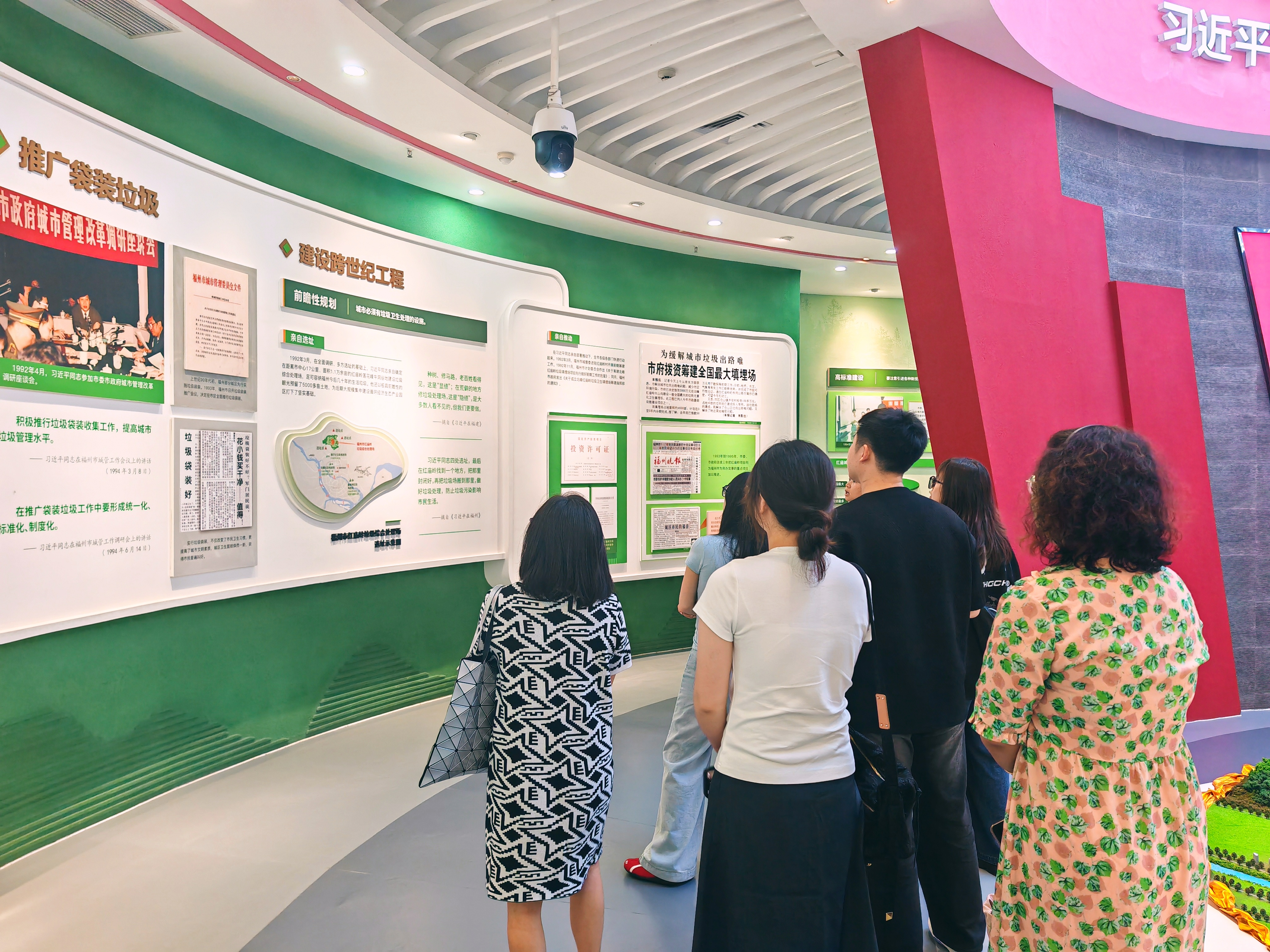 活动伊始,党员们走进“红庙岭・跨世纪的造福工程 —— 习近平同志领导福州生态文明建设的创新理念与生动实践”展馆。展馆内,一段段历史资料、一个个生动故事,将大家带回上世纪90年代。党员们认真聆听讲解,深入了解习近平同志当年擘画红庙岭建设蓝图的过程,深刻领会生态文明建设理念的前瞻性。从垃圾填埋到分类资源化、基地化建设,红庙岭30年的迭代历程,是“一张蓝图绘到底”的生动诠释,更坚定了党员们对党的生态文明战略部署的信心。