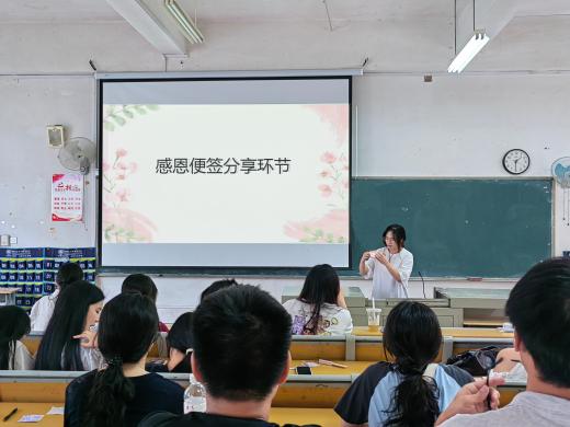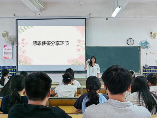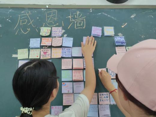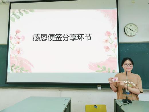 随后,同学们依次走上台前分享感悟,并将满载真情的便签郑重地贴在指定的“感恩墙”上。小小便签,汇聚成一片五彩缤纷的“爱心海洋”。