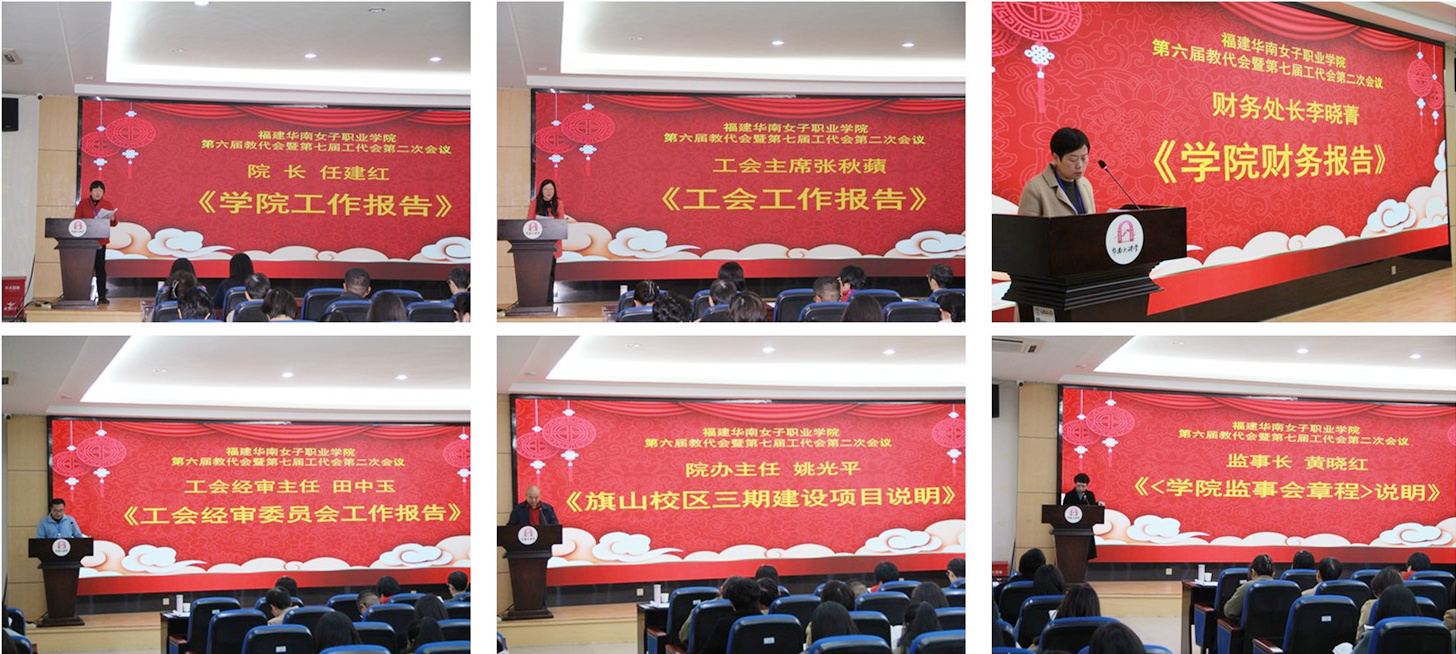 会议审议通过了《学院工作报告》、《工会工作报告》、《学院财务报告》、《工会经费委员会工作报告》以及《第六届教代会暨第七届工代会第一次会议提案反馈报告》,审议了《旗山校区三期项目建设说明》和《学院监事会章程说明》。此外,代表们还进行了分组讨论,并就全院教职工关心的有关学院建设发展及师生切身利益等问题提交了提案。
