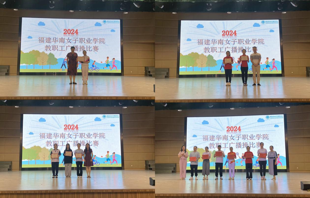 为贯彻落实《全民健康条例》,深入开展全民健身运动,增强教职工的健身意识,展示学院教职工良好的精神面貌,我院于6月26日下午举办教职工广播操比赛。