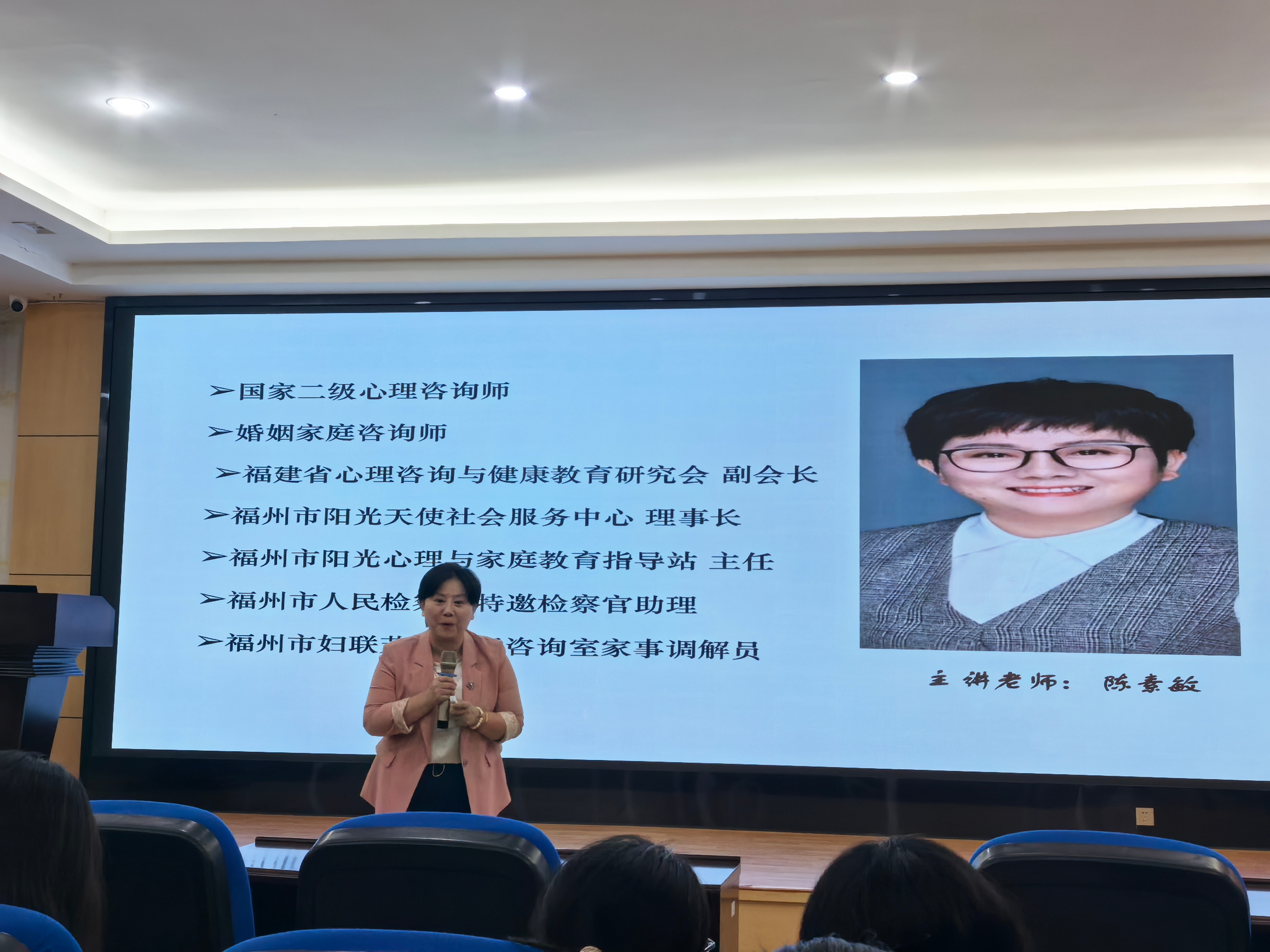 2024年10月30日下午,我校特邀福建省心理咨询与健康教育研究会副会长陈素敏,为教职工做“教师压力管理与心理健康调适”的专题讲座。