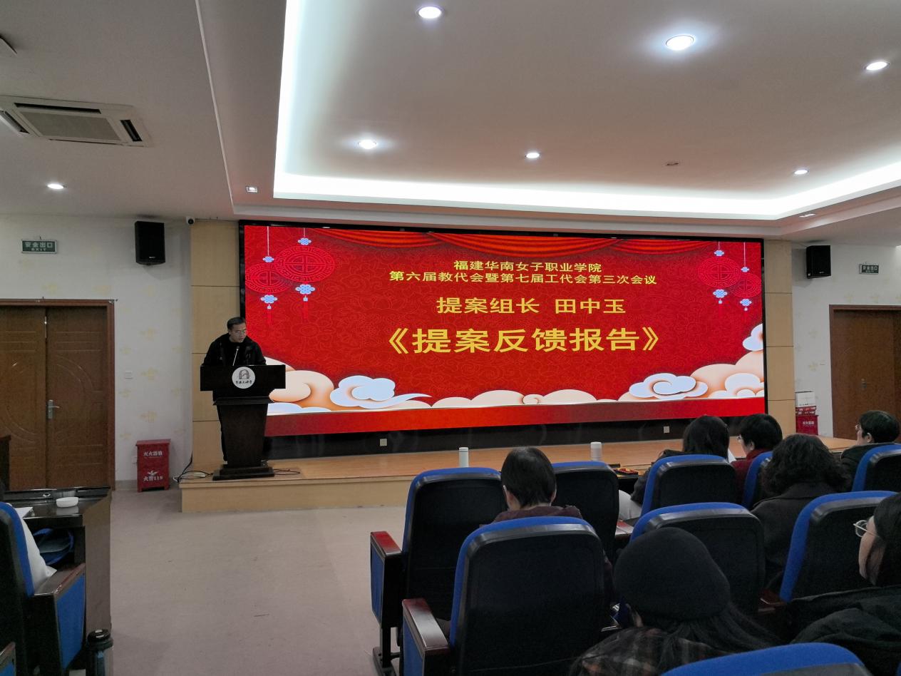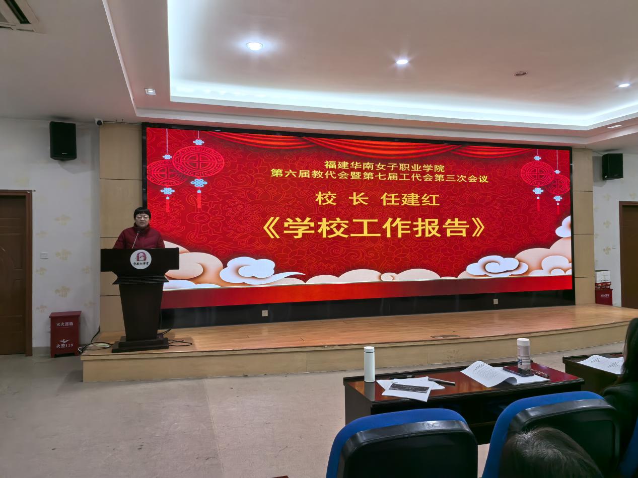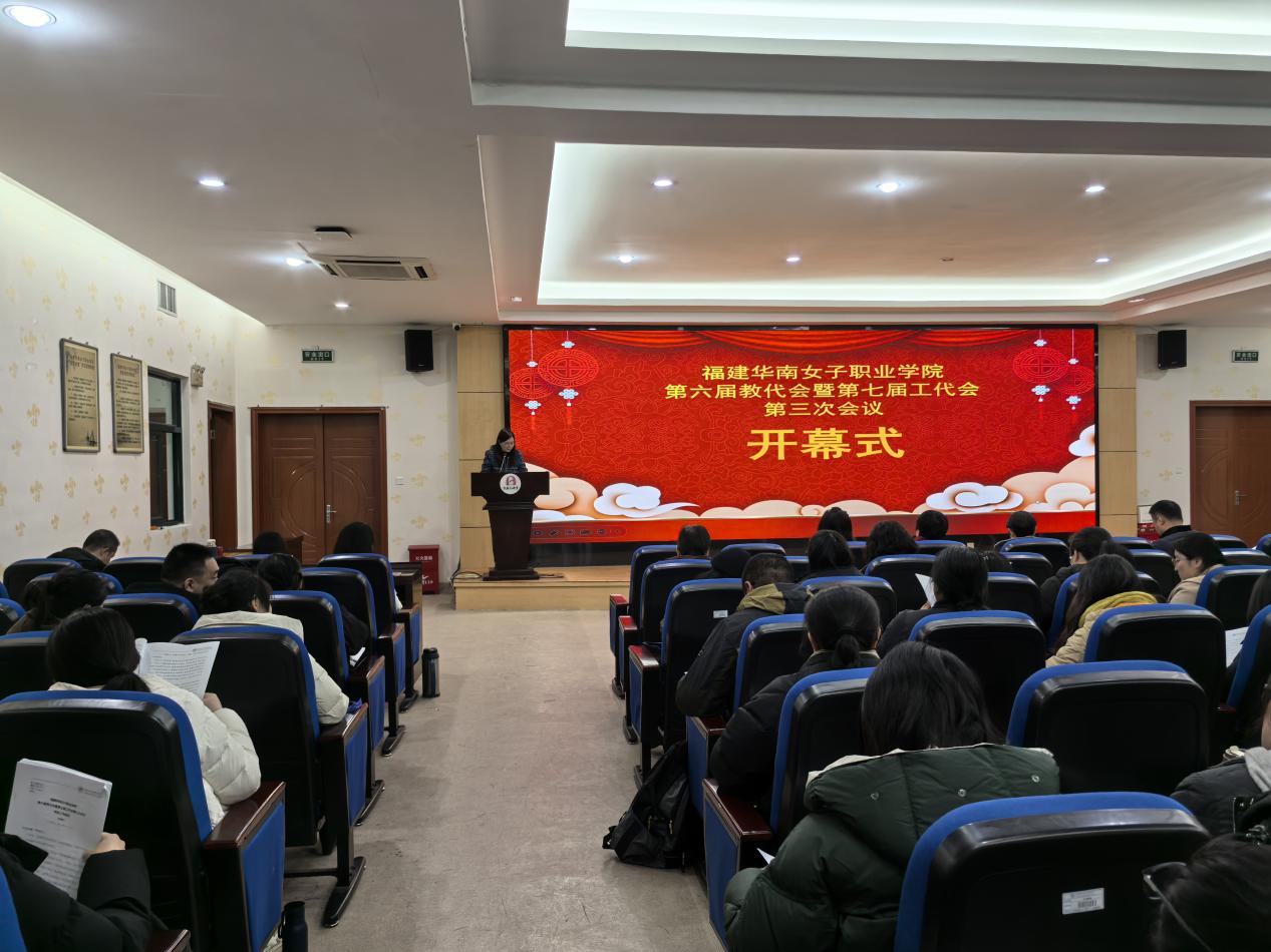 福建华南女子职业学院第六届教代会暨第七届工代会第三次会议于1月17日顺利召开。会议109名正式代表和5名列席代表参加大会。会议由大会执行主席、工会主席、副校长张秋蘋主持。
