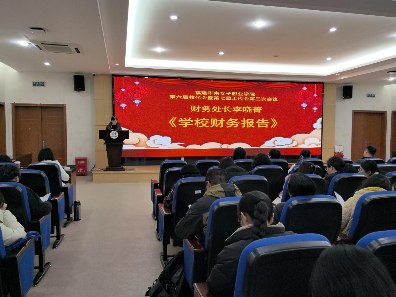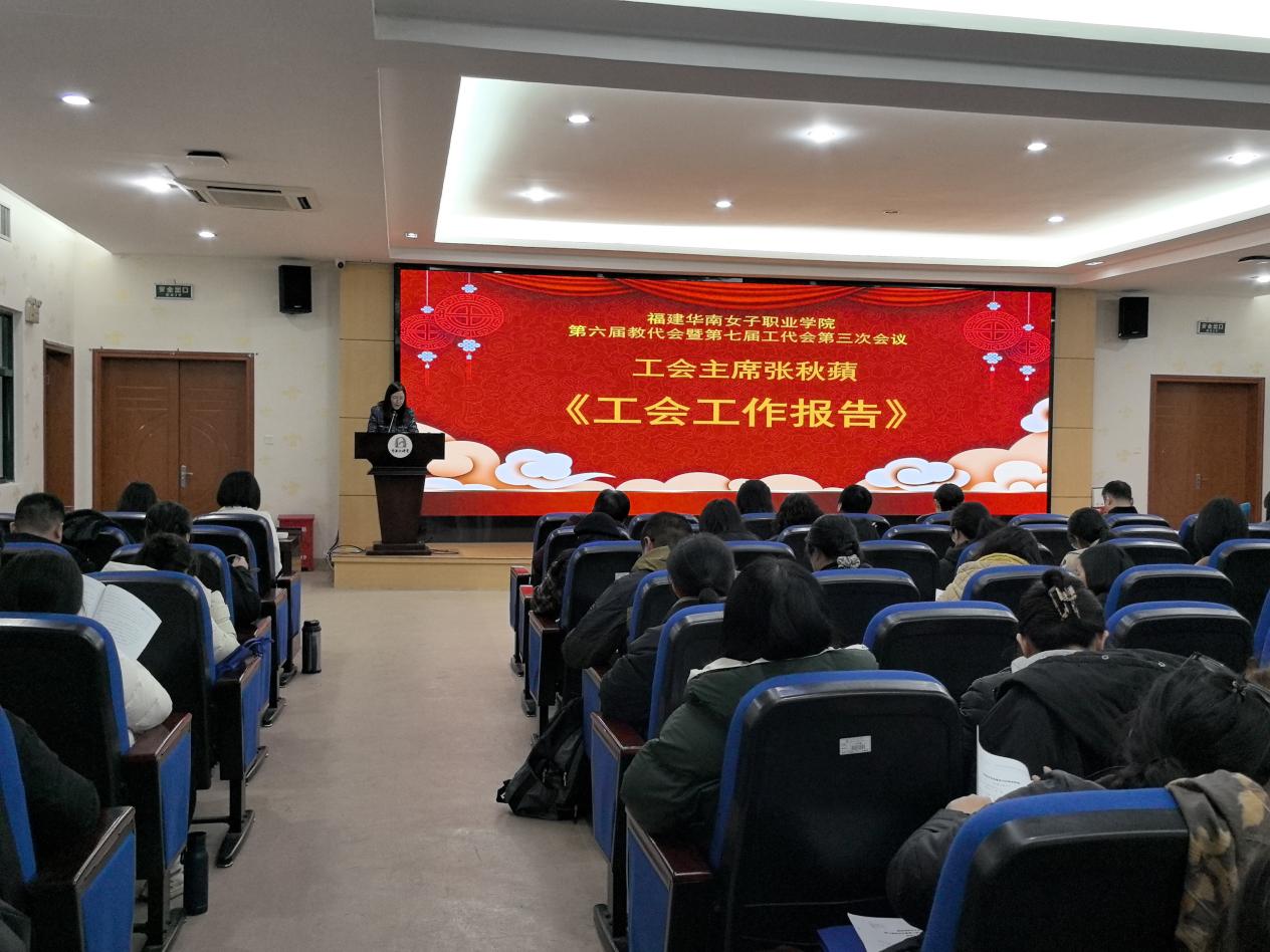 福建华南女子职业学院第六届教代会暨第七届工代会第三次会议于1月17日顺利召开。会议109名正式代表和5名列席代表参加大会。会议由大会执行主席、工会主席、副校长张秋蘋主持。