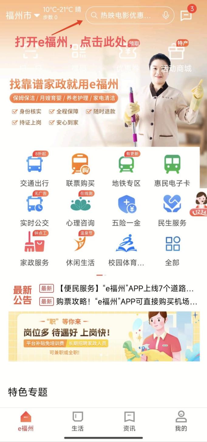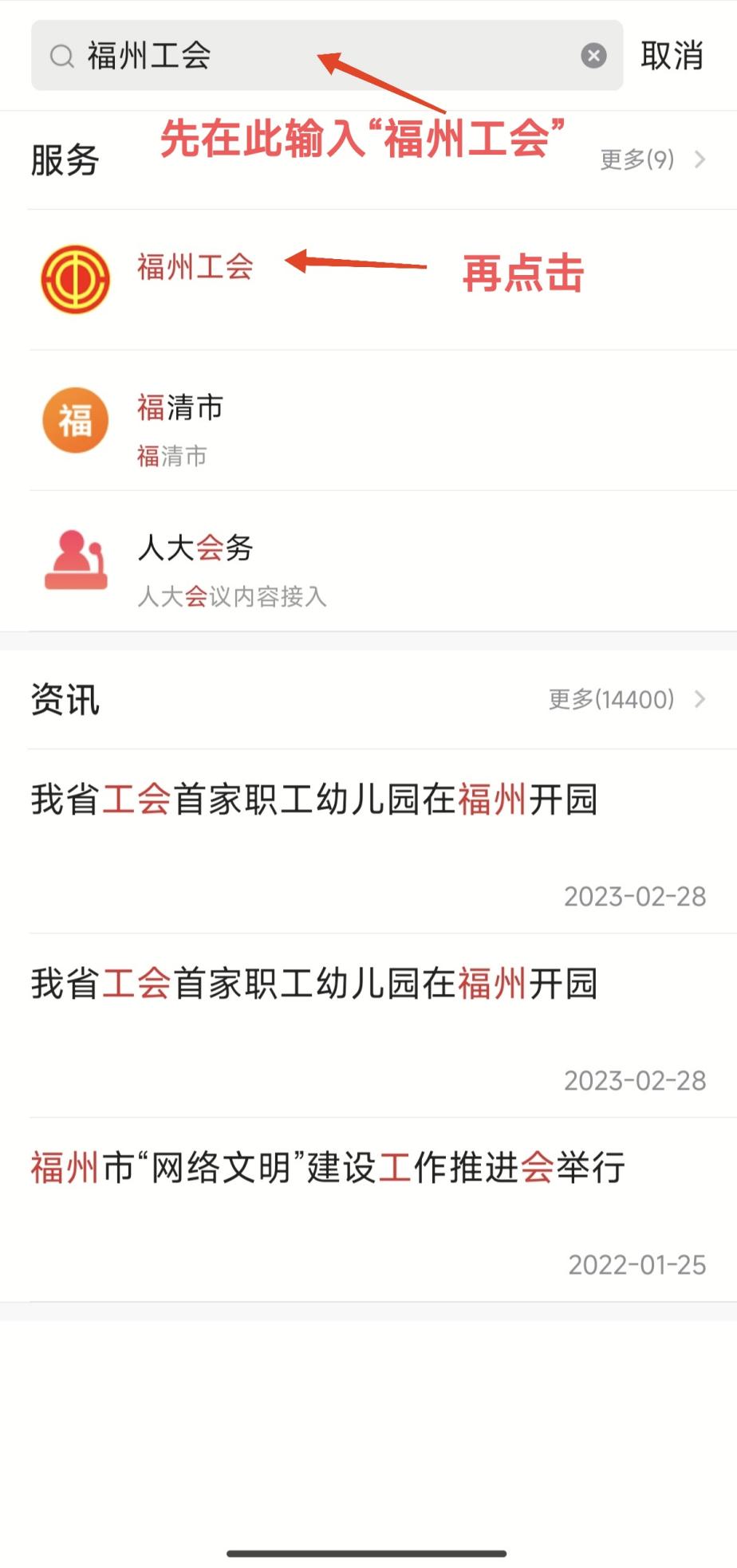 下载“e福州”,打开并搜索“福州工会”,按照如下步骤即可查询个人参保情况。