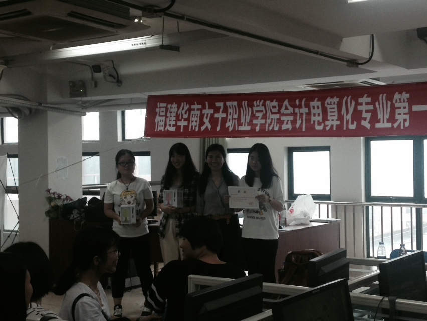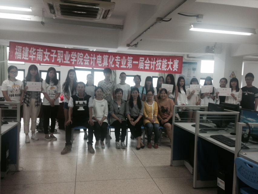 为了增强学生会计职业技能能力,提升会计专业素质,我院现代管理系会计电算化专业于2015.6.5下午开办了“第一届会计职业技能竞赛”。在比赛的整个过程中,现场的气氛都很活跃,每组队员都尽情的展现着自己的才能,充分体现了团队精神。最后由会计电算化的专业主任为我们的一等奖陈纹纹,林婷,林丽三位同学颁奖。专业老师及辅导员为我们的二三等奖及优秀奖颁奖。