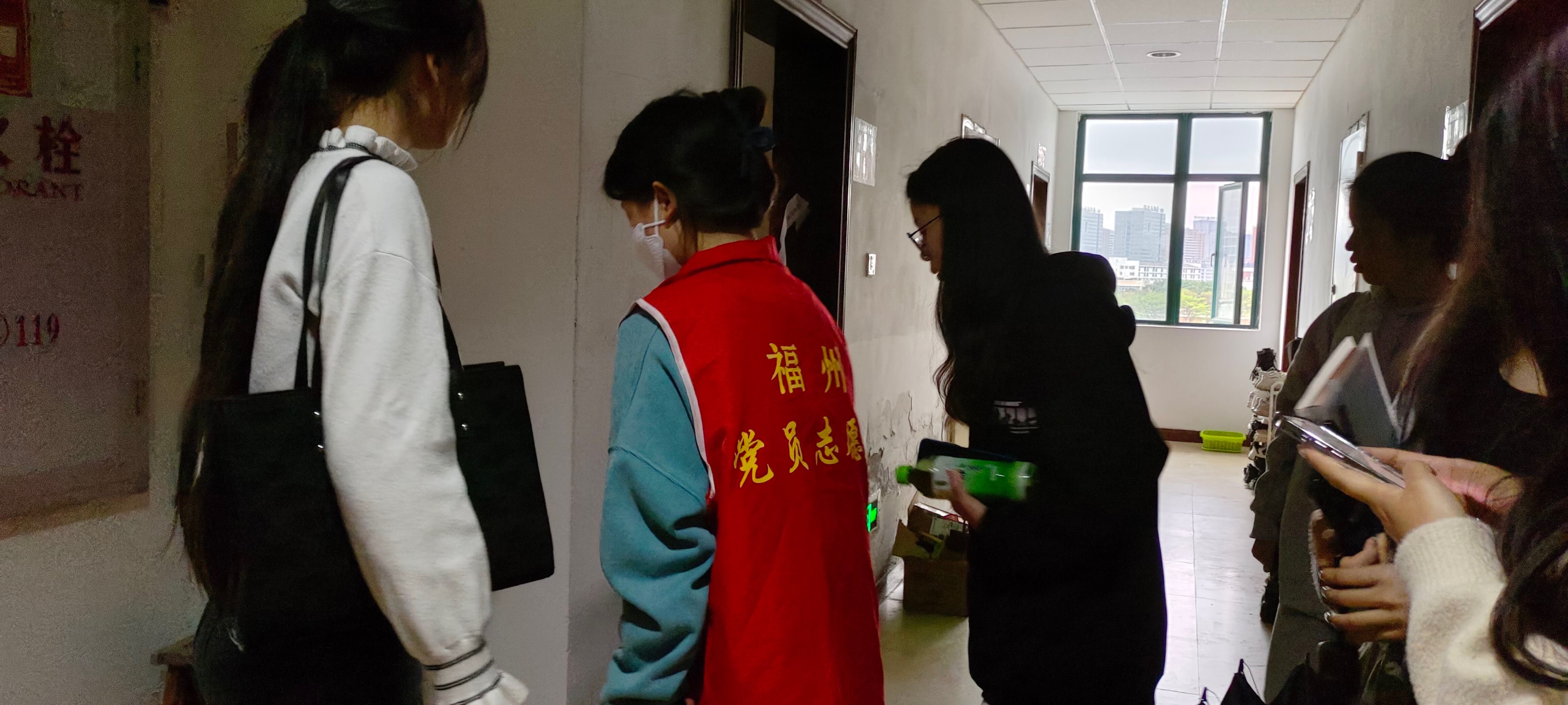 活动中,志愿者们身穿红马甲,引导同学们保持宿舍文明,成为学生公寓社区一道亮丽风景线。