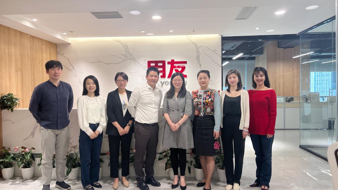 用友集团热情接待了张秋蘋、黄磊晶副院长一行,介绍了企业发展历程,经营业务和业绩成果及未来发展方向,参观了企业文化墙、荣誉墙和办公区,详细了解企业业务规模和企业文化。