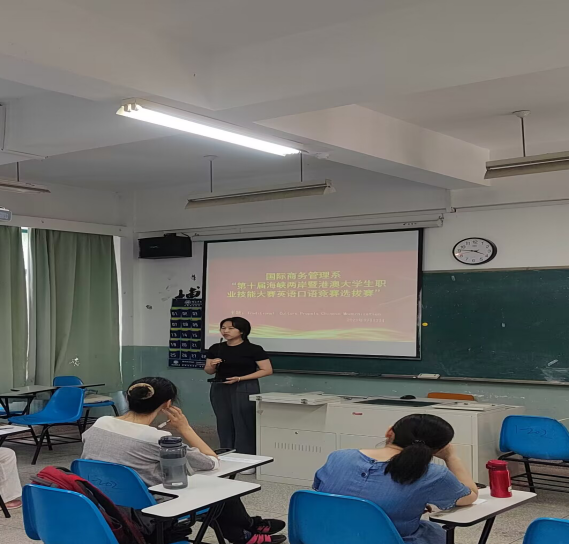 为了进一步加强海峡两岸大学生的交流与沟通,培养两岸大学生的英语能力,充分展示了我系学子的英语演讲风采,福建华南女子职业学院国际商务管理系于2023年9月13日在教学楼2栋202教室举行“第十届海峡两岸暨港澳大学生职业技能大赛一一英语口语竞赛选拔赛”。