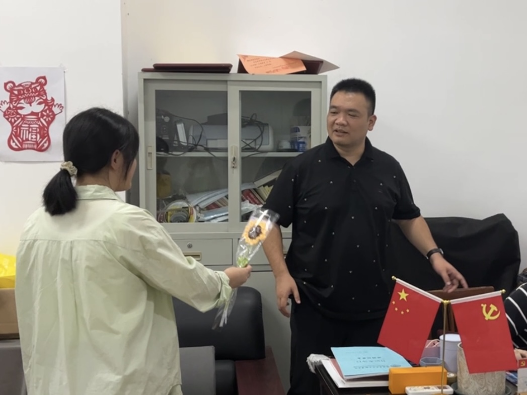 笔墨三分诗意,言语七分师情。我系学子将爱注于笔尖,将情汇于文字,献于我院教师。在献花过程中,同学们纷纷表示,老师们不仅教会了他们丰富的知识,更启迪了他们的智慧,引领他们走向成长的道路。别样的节日,别样的感动,老师们放下手中的工作来迎接学生的热情,欣喜与感动的同时也表达了对同学们的关怀与期望。