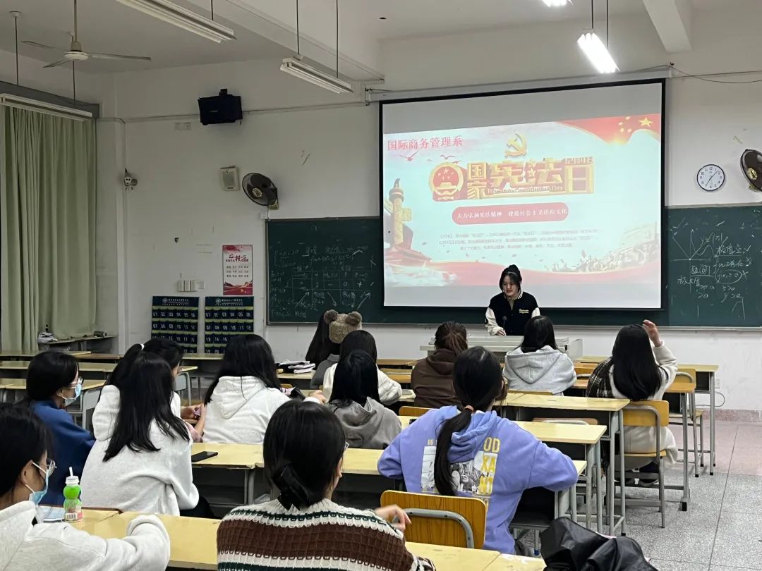 为深入学习宣传宪法,大力弘扬社会主义法治精神,突出宣传宪法,进一步提高广大同学的宪法意识和法制观念,维护宪法权威,12月1日-3日,国际商务管理系陆续开展开展“弘扬宪法精神”系列活动。