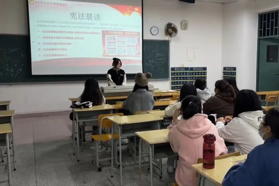 活动中,我系积极组织学生自主学习并观看宪法视频,开展“宪法知识知多少”竞赛活动,在答题环节中不断加深对我国宪法的了解,也进一步提高了对宪法重要性的认识。同时,宪法晨读活动的开展,让我系学子感受宪法的崇高和庄严。宣誓环节中,不断领会宪法在国家政治经济和社会生活中的重要地位,进而培养全体学生对宪法的认同和尊重,推动全校学生尊法学法守法用法,促进平安、法治校园建设。