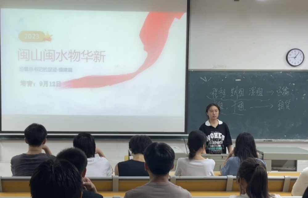 9月11日,国际商务管理系组织培青读书社成员开展《闽山闽水物华新-习近平福建足迹》主题集中学习。会上,主持人分别从机制活、产业优、百姓富、生态美四个方面,引导同学们感悟党的二十大精神,不断汲取智慧和力量。同学们纷纷表示,要通过多种形式继续认真学习《闽山闽水物华新——习近平福建足迹》,深入开展研讨交流,深刻领悟书中蕴含的宝贵思想财富,积极发挥自身优势作用,以实际的行动学习宣传贯彻党的二十大精神。