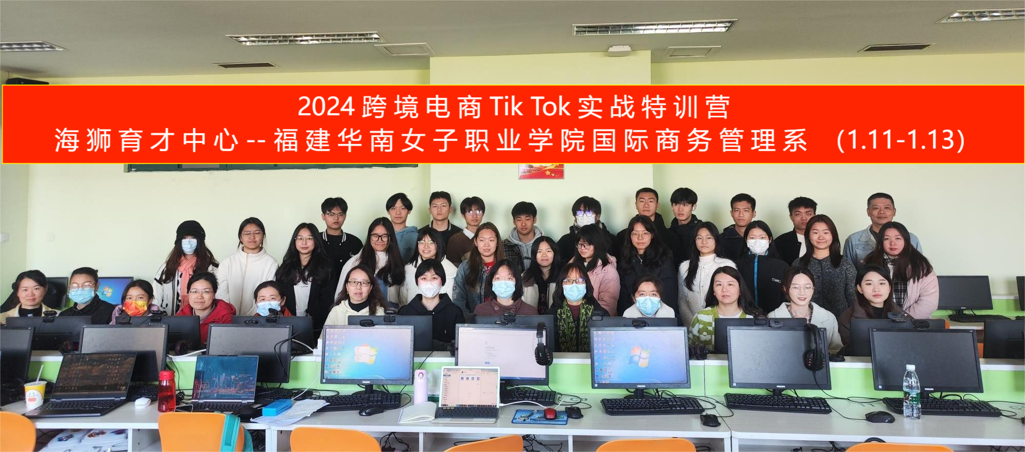 2024年1月11日至13日,福建华南女子职业学院国际商务管理系协同福州海狮育才中心在我院组织完成跨境电商Tik Tok实战特训营培训。此次培训旨在帮助学生和教师掌握TikTok平台的运营策略和技巧,提高跨境电商业务能力。