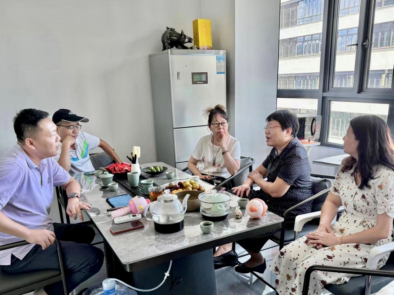 在公司,教师们受到了热情接待。首先,企业创办人连训详细介绍了企业的业务范畴、发展规模,展示了公司的爆款产品。随后,双方进行了深入的座谈交流,双方就电商行业的未来发展趋势、跨境电商的挑战与机遇等议题展开探讨。企业方结合实战经验,从岗位技能需求等多个角度进行了分享。在谈到人才培养方面,双方一致认为,当前电商行业对人才的需求日益多样化、专业化,高校应加强与企业的合作,共同构建符合行业需求的人才培养体系。