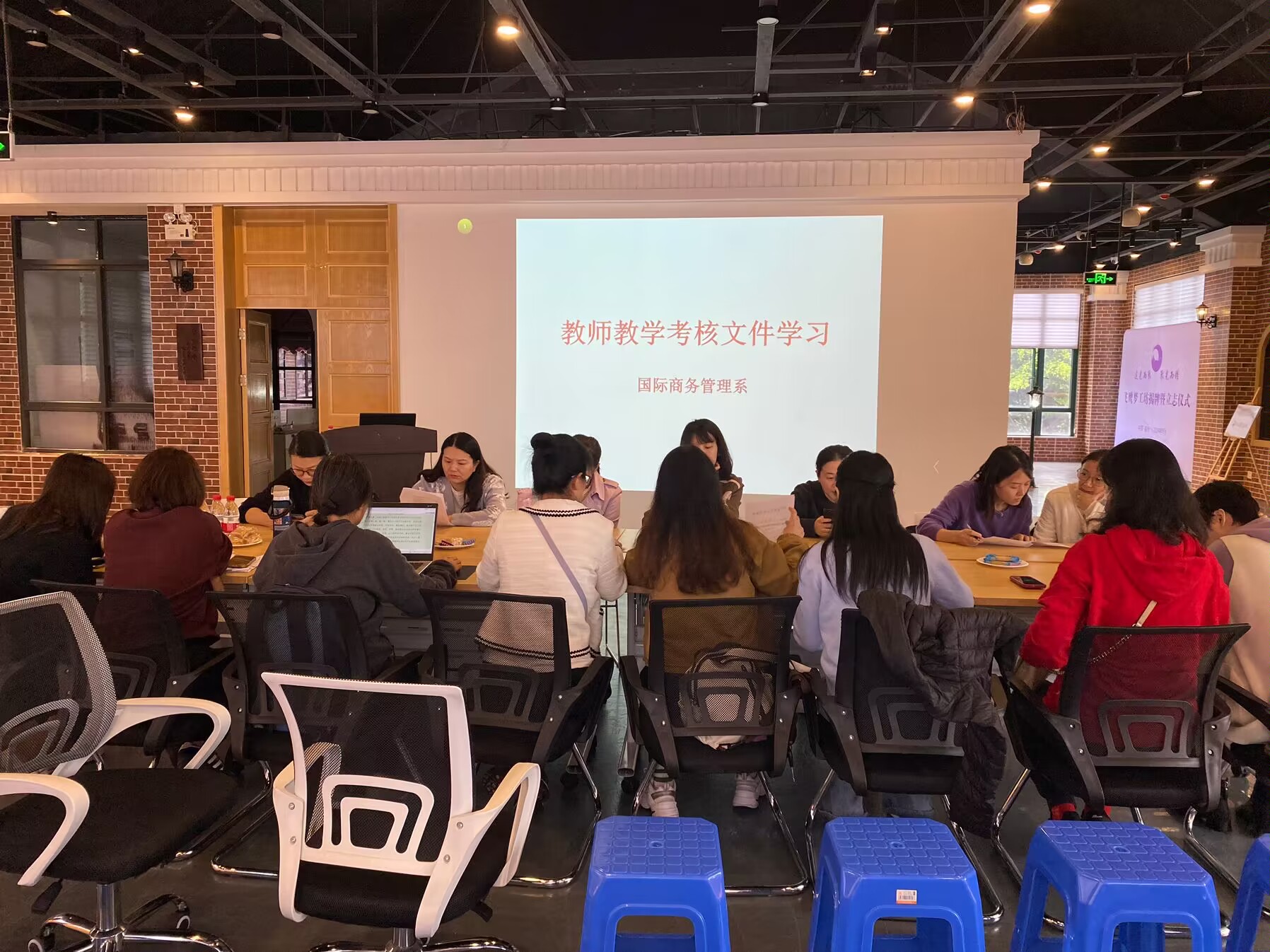 为了加强教师队伍建设和管理,引领全体教师全面、客观、准确地领会学校新修订的教职工考核管理办法及考核评分标准的文件精神,并在政治思想表现、学术水平和教学科研能力等方面严格要求自我,国际商务管理系于2024年11月20日组织全体教师开展学习活动。