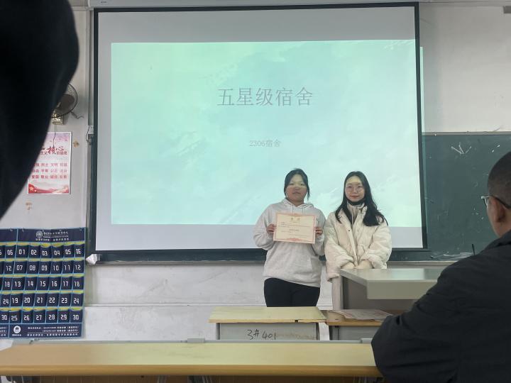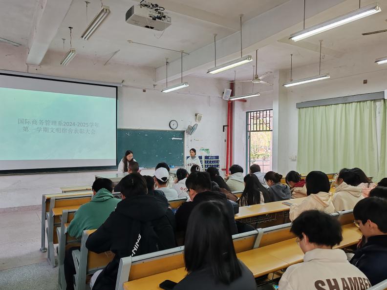 为提升宿舍文化品味,营造积极向上、舒适优雅、安全和谐的宿舍文化氛围,2024年12月30日,国际商务管理系在福万楼3-102教室举办10-12月份星级文明宿舍表彰大会。