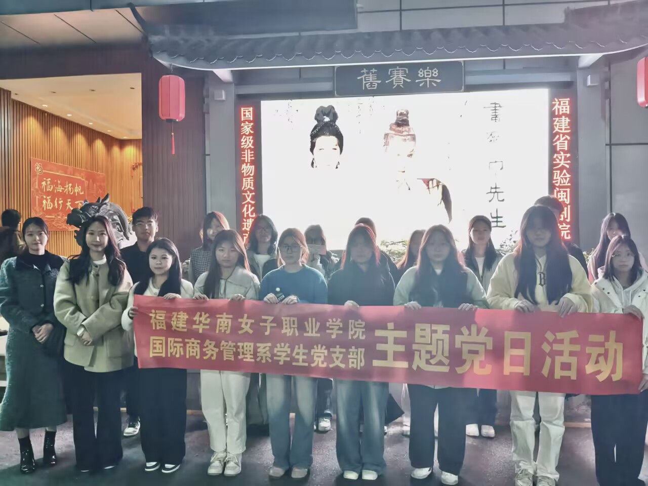 为深入学习贯彻习近平总书记关于文化传承的重要论述,进一步增强学生党员、入党积极分子和团员青年的文化自信。国际商务管理系学生党支部于2025年3月28日组织支部教师和入党积极分子开展“体悟优秀传统文化,感悟闽剧独特魅力”主题党日活动。此次活动还邀请国际商务管理系教师党支部陈剑霞老师参加,通过观看闽剧《画网巾先生》,深刻感受传统文化的独特魅力与深厚底蕴。