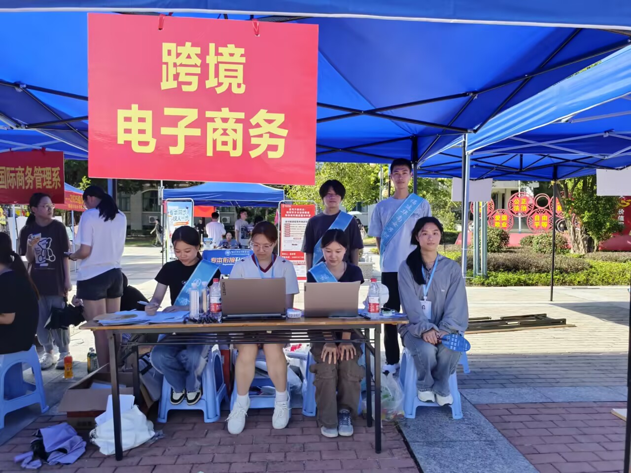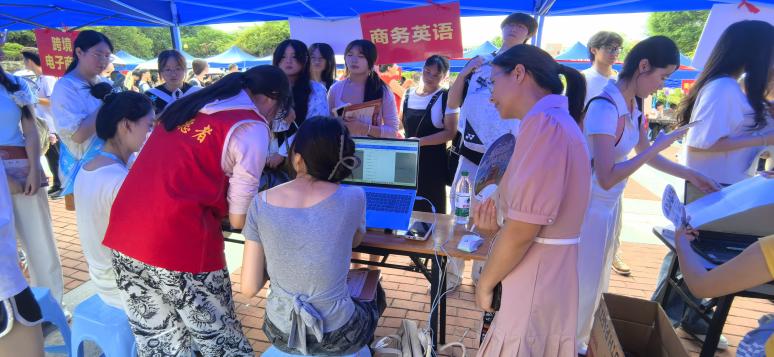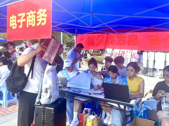 9月6日,系部教师以专业姿态迎接每一位新生及家长,耐心解答专业学习及未来发展等问题,帮助新生深入了解商务英语、电子商务及跨境电子商务领域的广阔前景。辅导员全天候值守报到点,高效完成资格审核、档案接收等手续,并细致安排宿舍入住与物资领取事宜。
